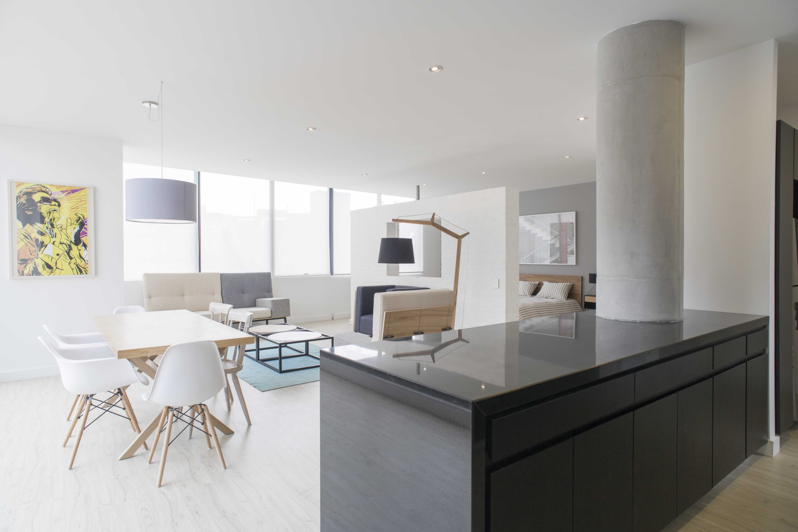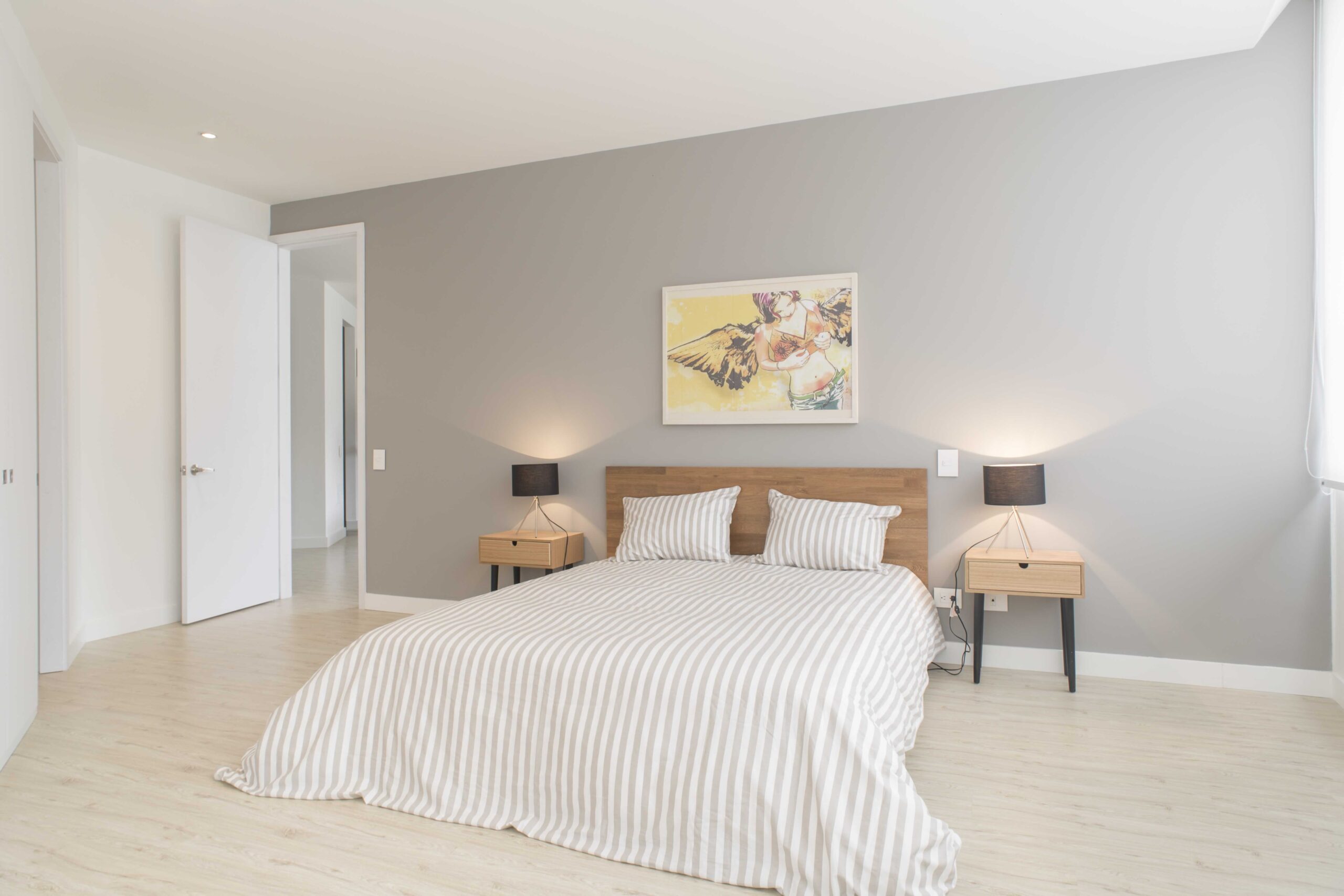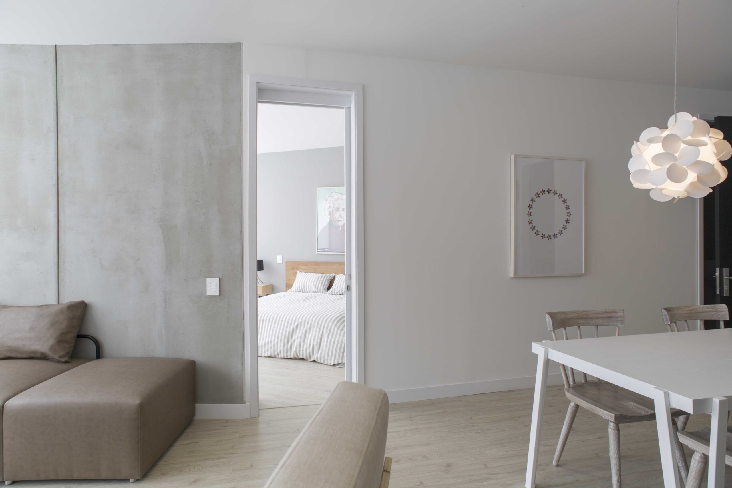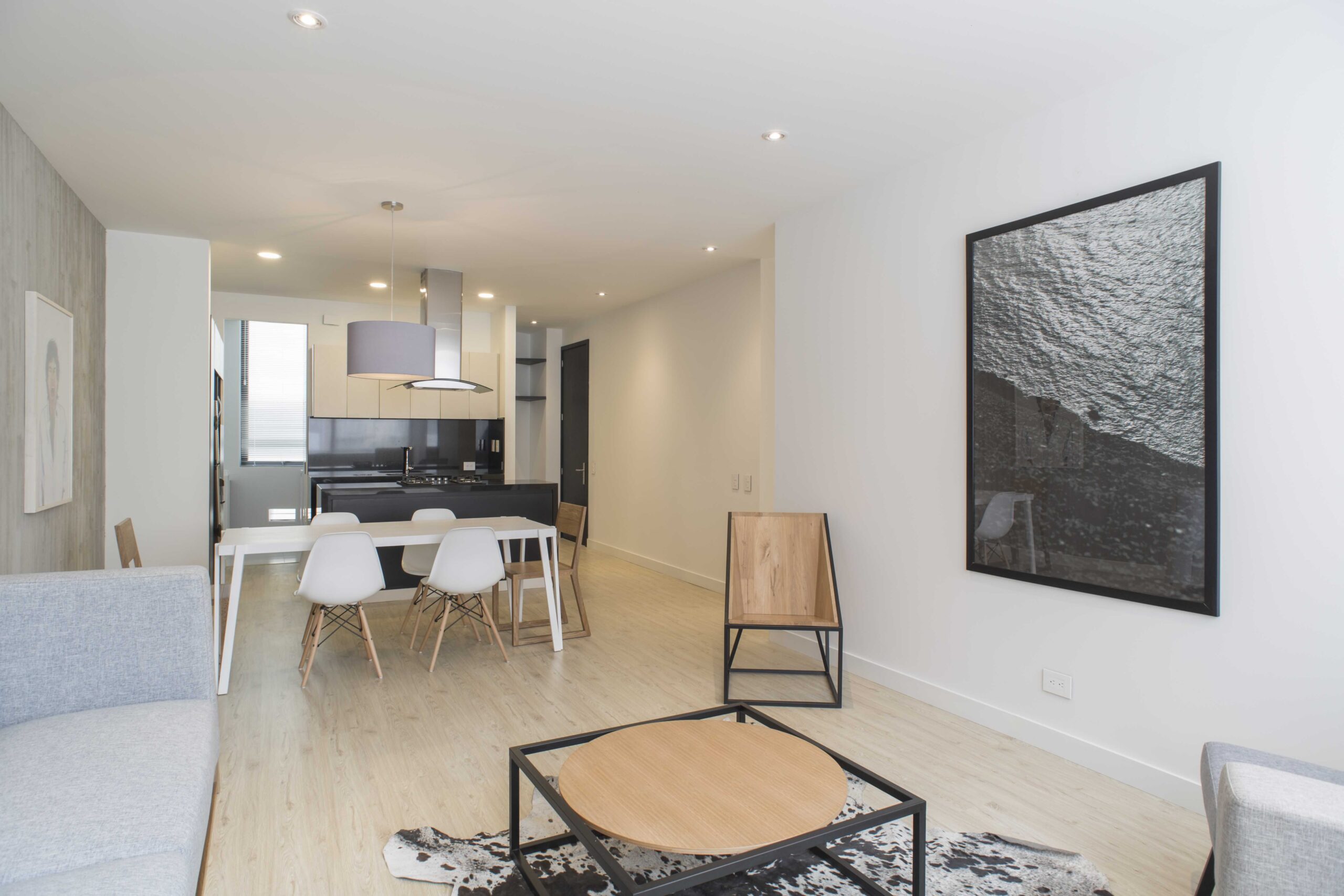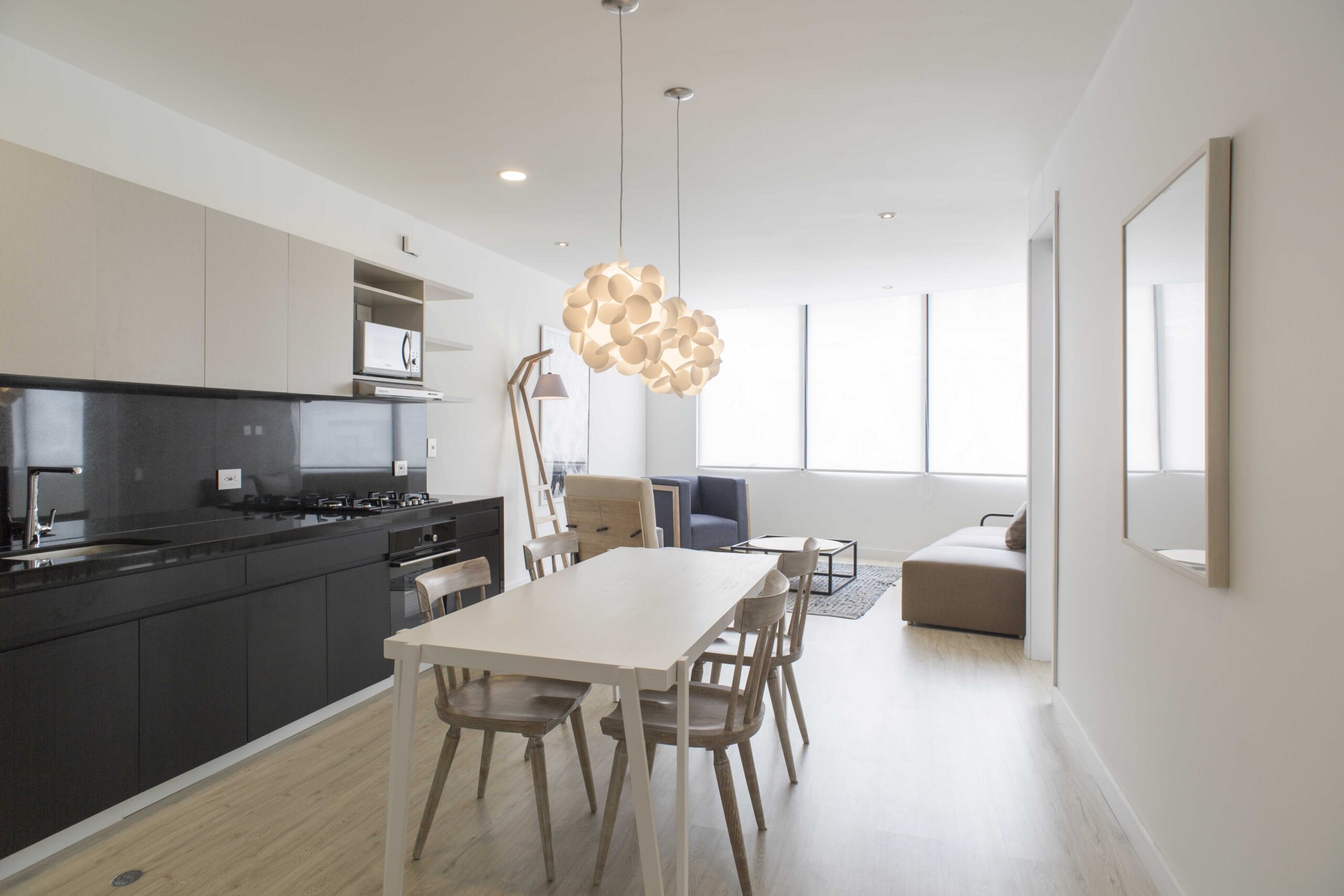 Apartamentos de 1 alcoba con vestier y baño privado. Área social con sala, comedor, cocina, baño social y cuarto de ropas.
