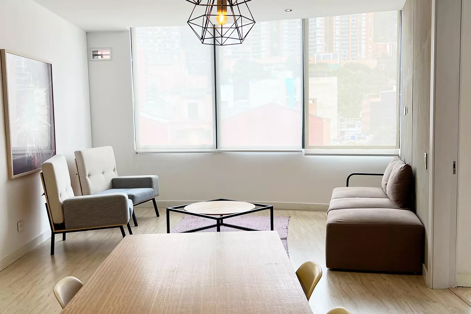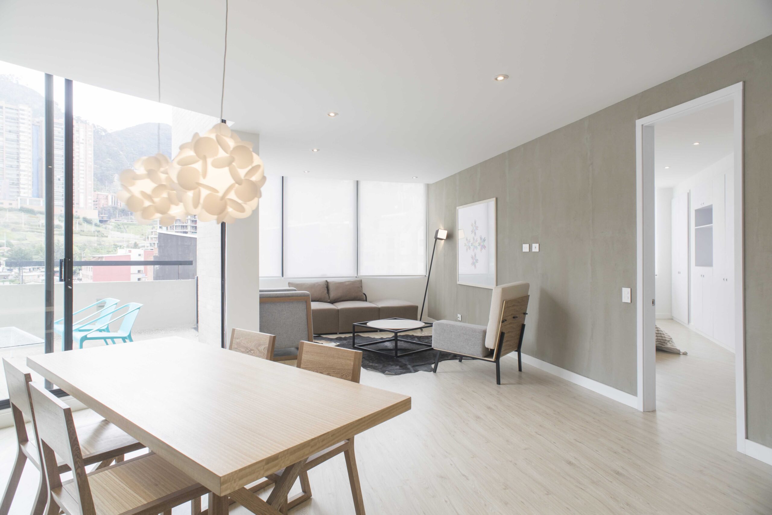 Apartamentos de 1 alcoba con vestier y baño privado. Área social con sala, comedor, cocina, baño social y cuarto de ropas. Terraza privada.